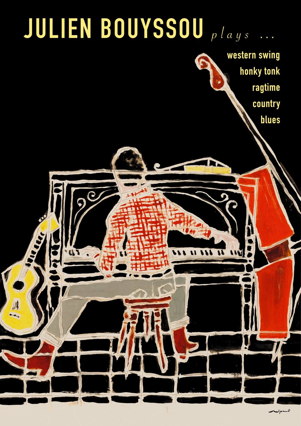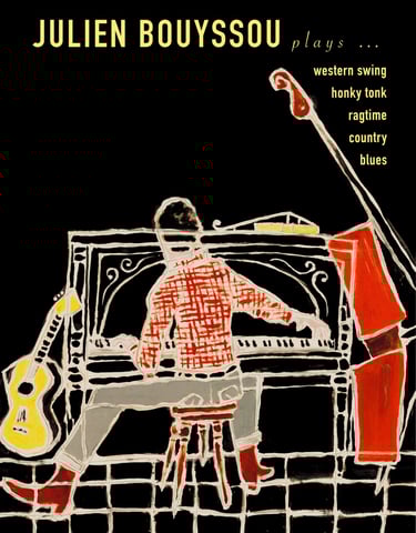 Equipé de son petit piano acoustique transportable, Julien Bouyssou met à l'honneur des noms tels que Moon Mullican considéré comme le "King of the Hillbilly Piano Players" ou encore Floyd Cramer, pianiste phare de la "A-team" de Nashville, groupe mythique de studio des années 50-60 qui enregistra les plus grands succès country de l'époque.